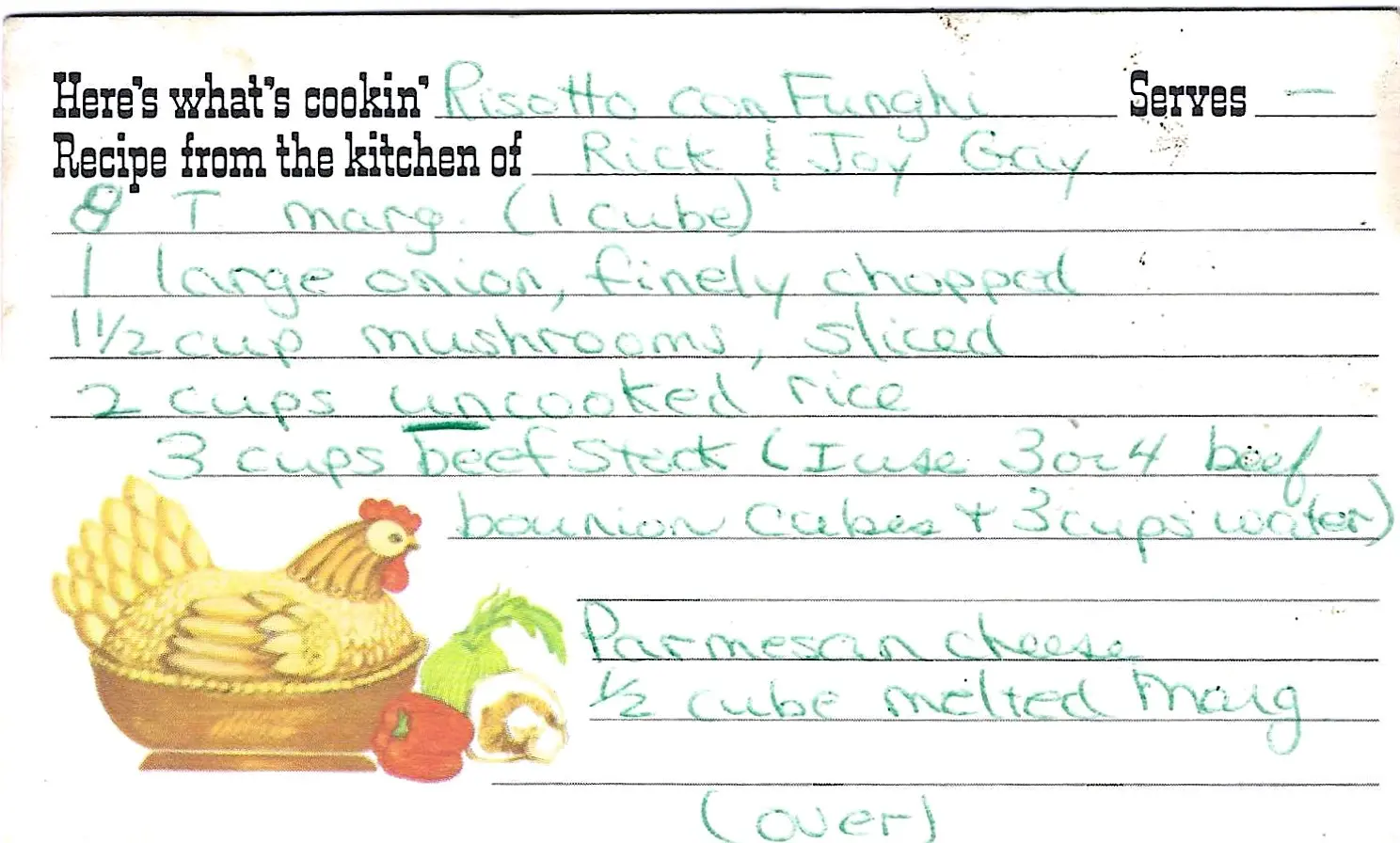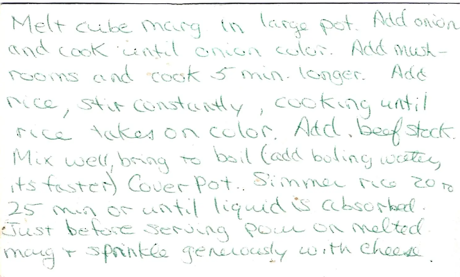 | Two Cups | Uncooked Rice (Arborio or similar risotto rice recommended) |