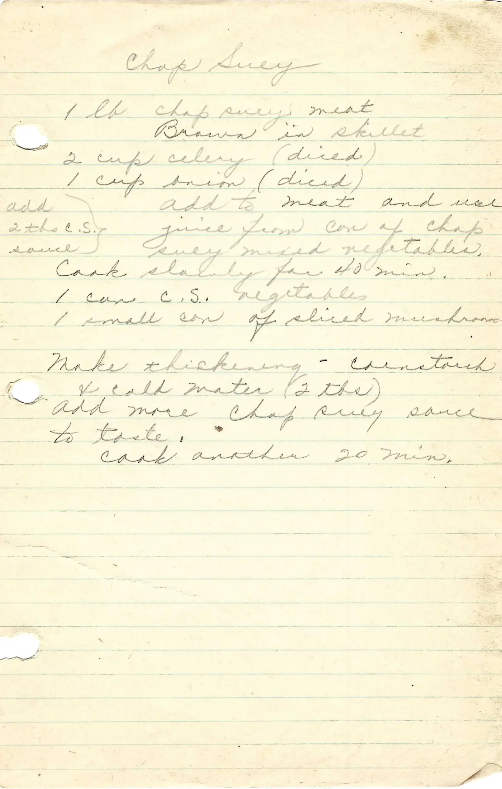 | 1 pound | Chop Suey Meat (e.g., pork or beef, thinly sliced) |