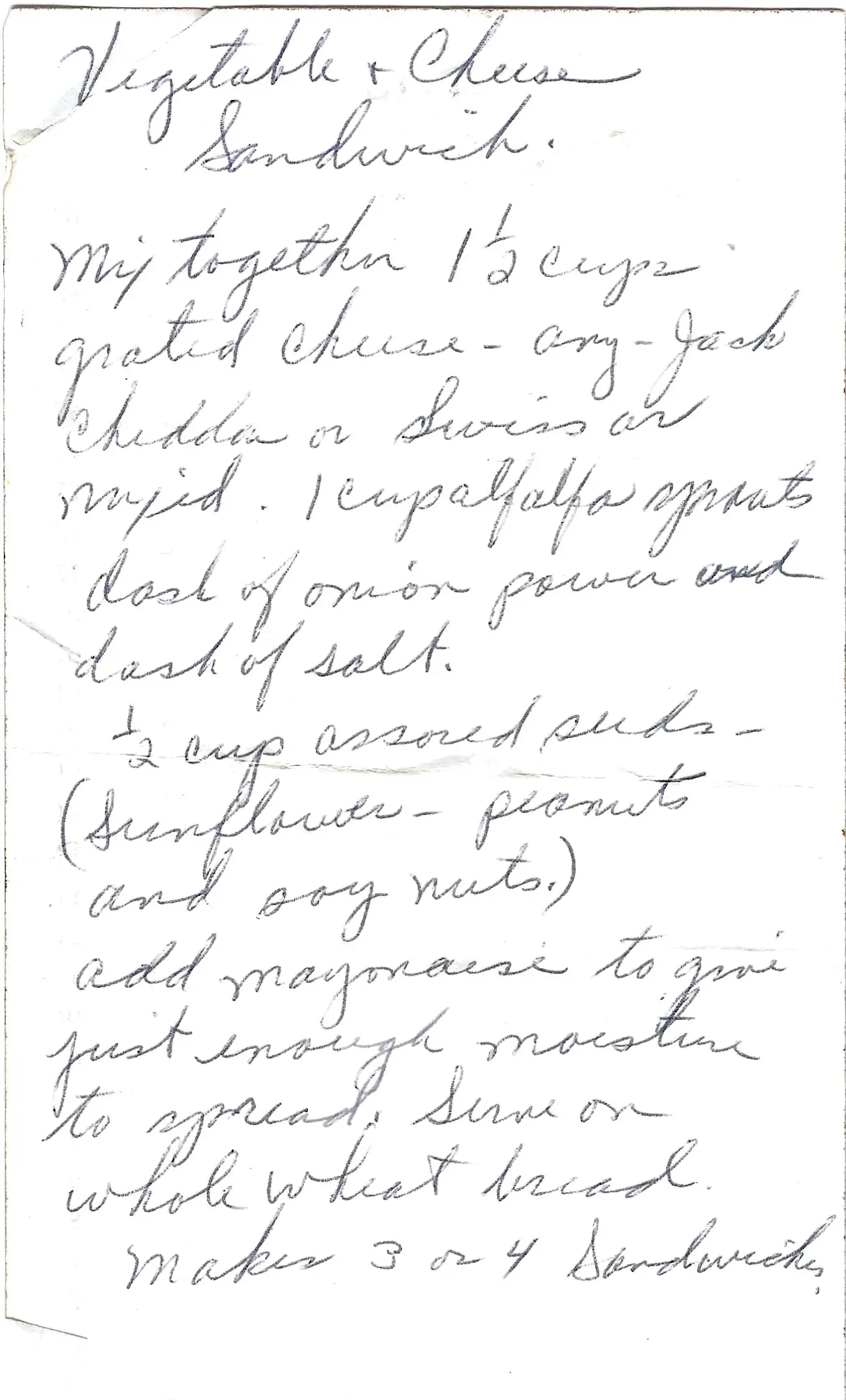- Mix together one and a half cups of grated cheese (any variety like Jack, Cheddar, or Swiss, or a mix), one cup of alfalfa sprouts, a dash of onion powder, and a dash of salt.