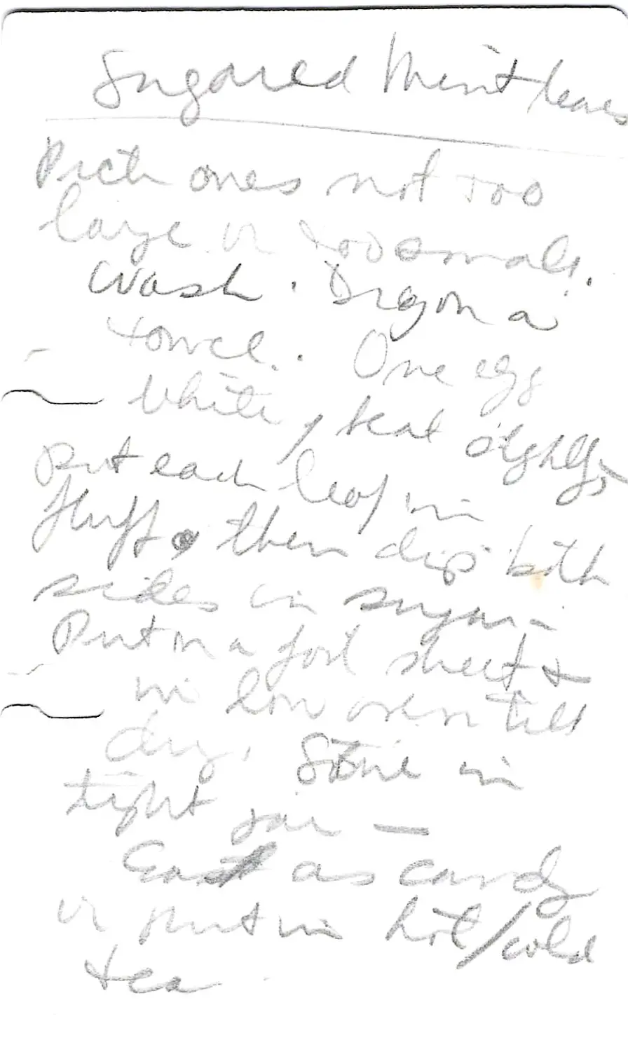 - Store the dried, sugared mint leaves in a tight jar.