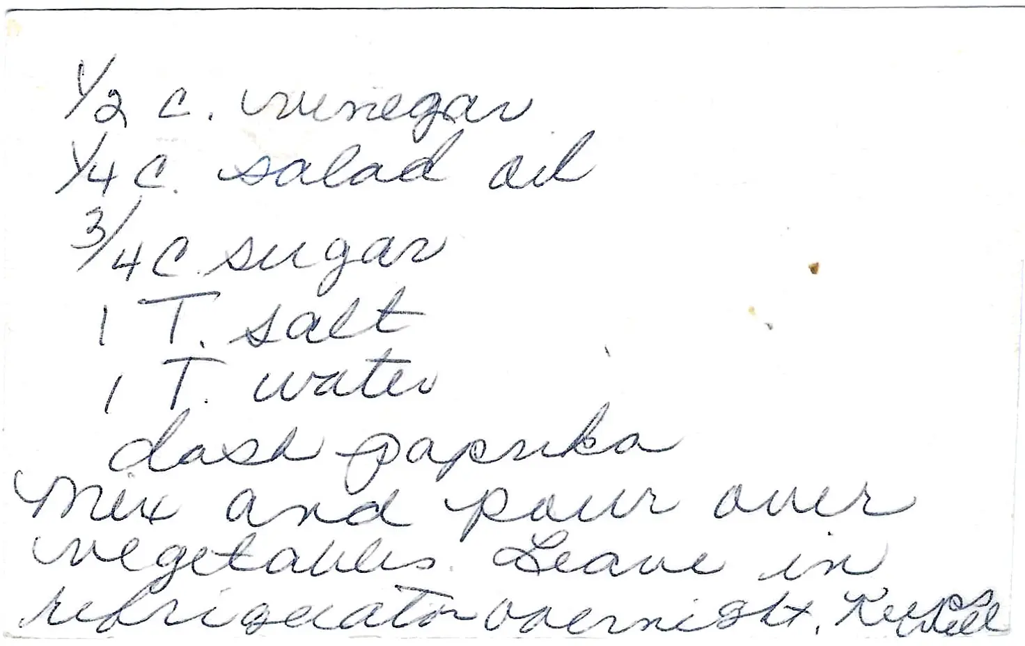 | 1/4 C. | Salad Oil |