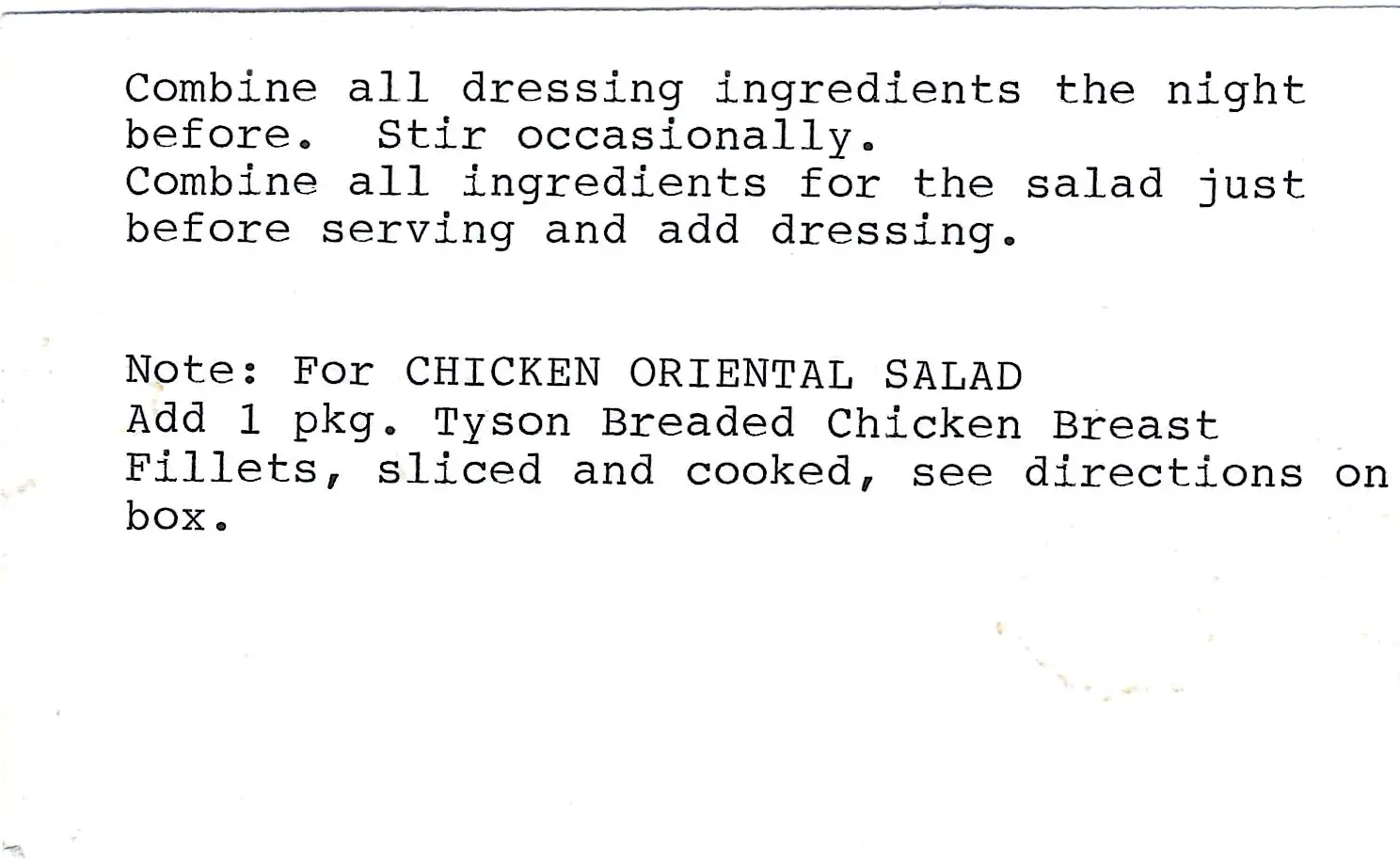 - This salad is best when the dressing is made the night before and the salad is tossed just before serving.