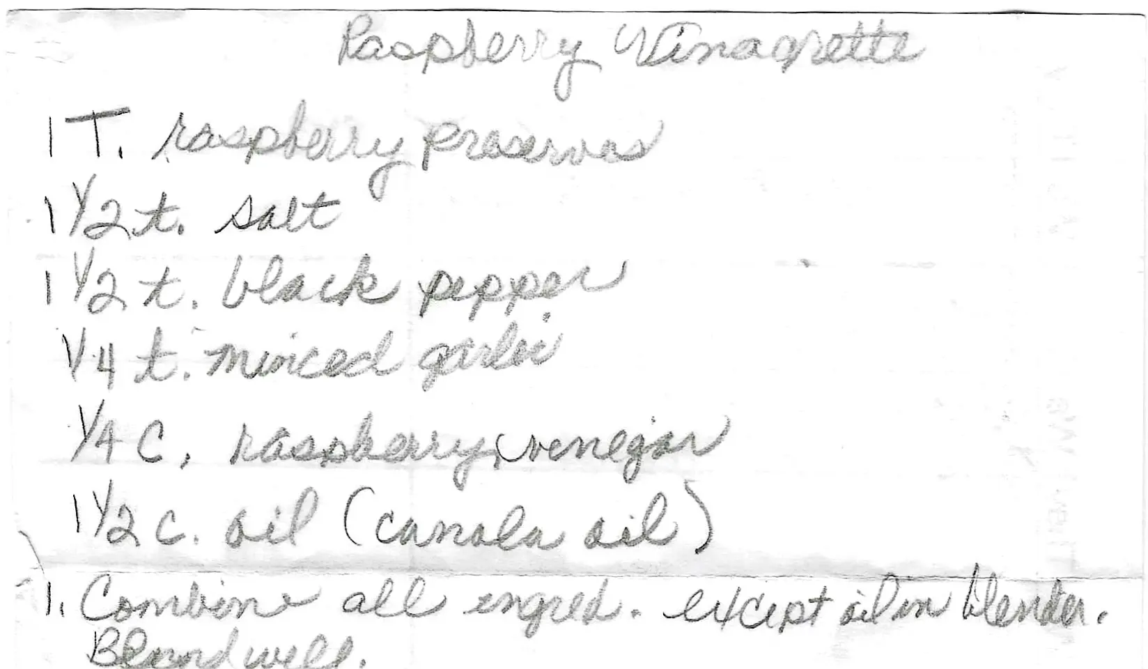 - In a blender, combine the raspberry preserves, salt, black pepper, minced garlic, and raspberry vinegar. Do not add the oil yet.