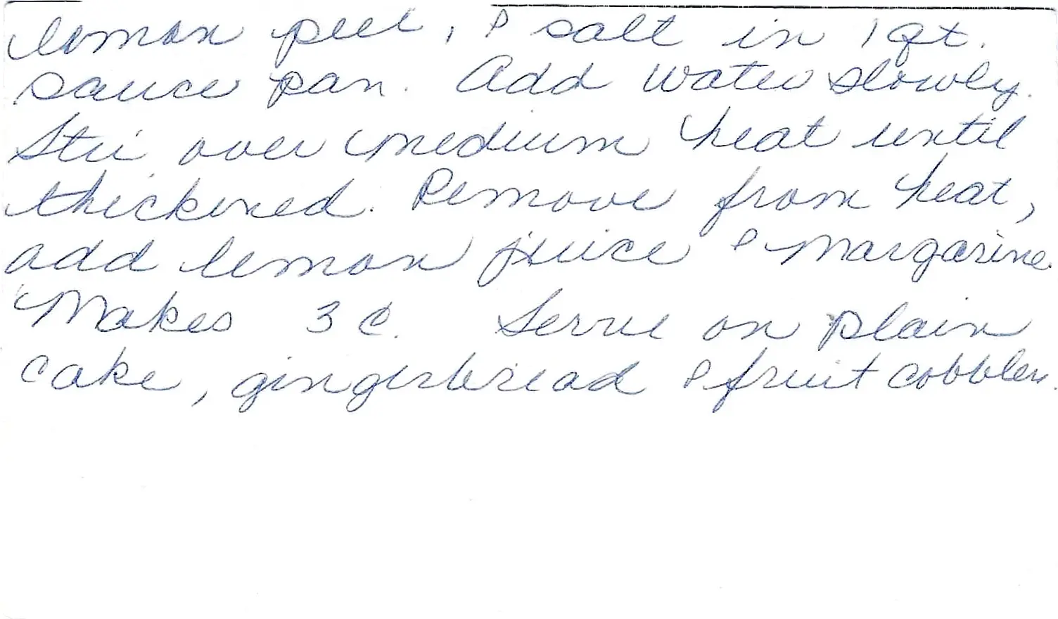 Makes 3 cups. Serve on plain cake, gingerbread, and fruit cobbler.