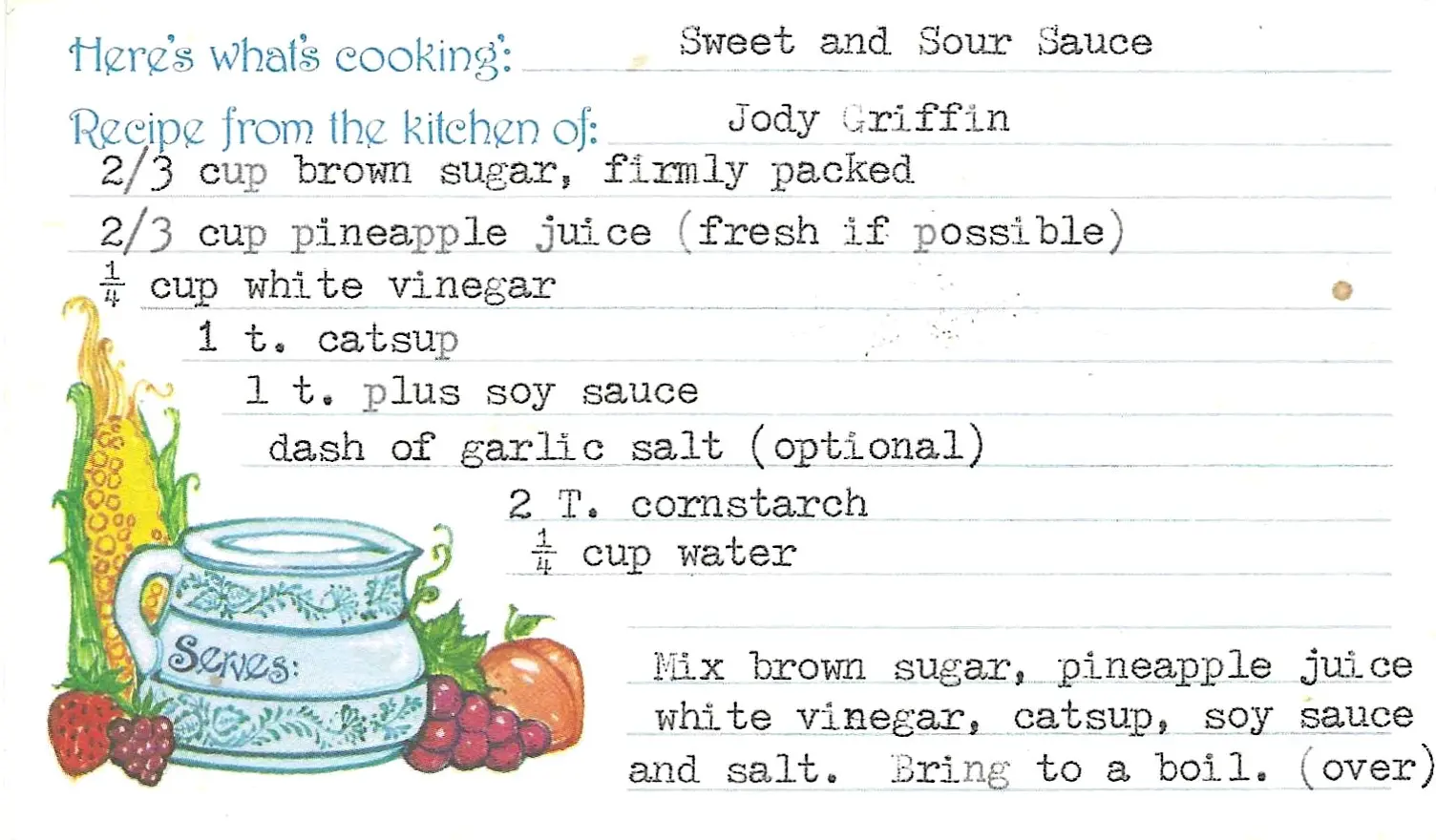 - In a saucepan, mix the brown sugar, pineapple juice, white vinegar, catsup, soy sauce, and salt.