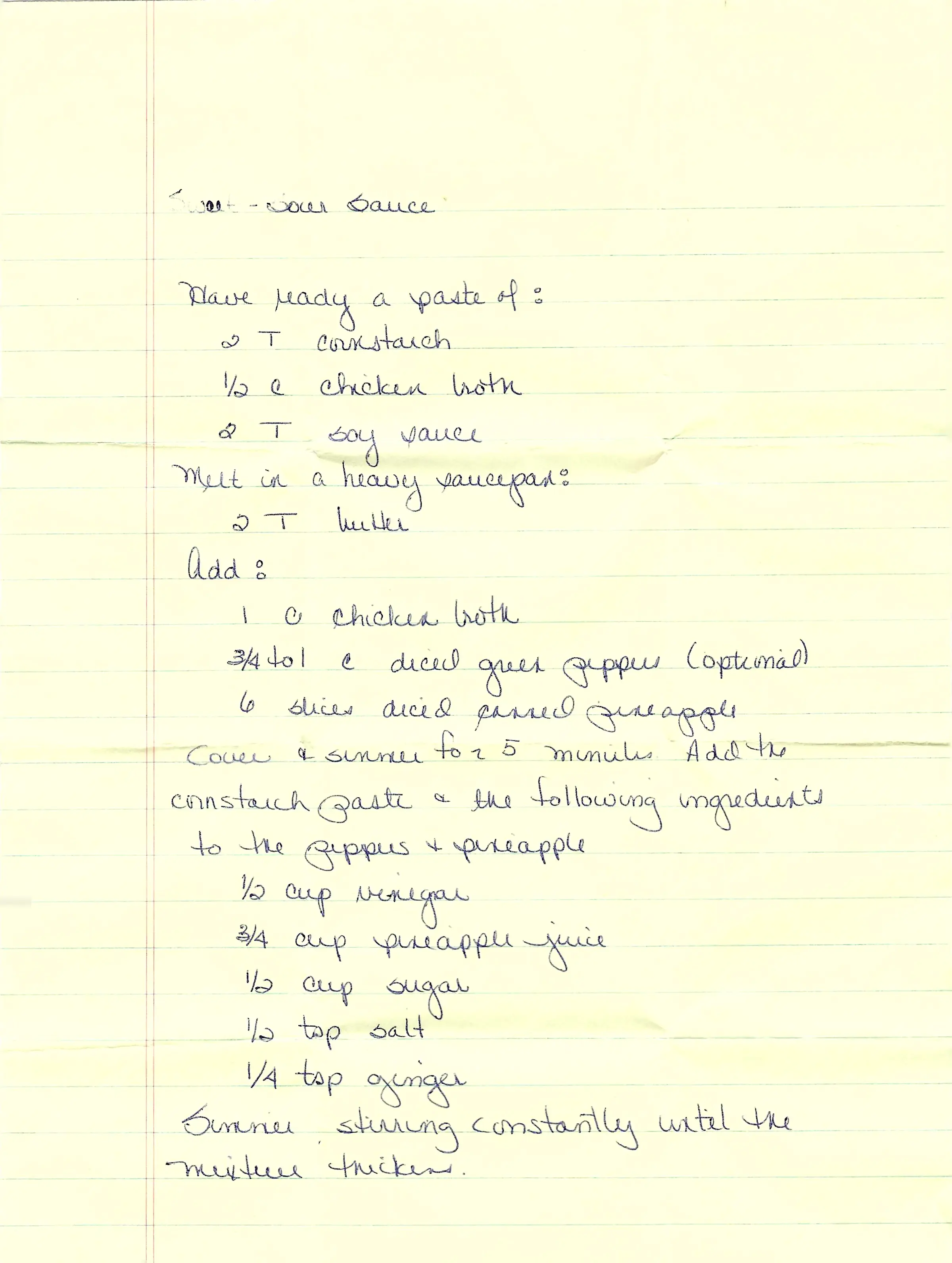 - Add: 1 C Chicken broth, 3/4 to 1 C diced green pepper (optional), 6 slices diced canned pineapple.