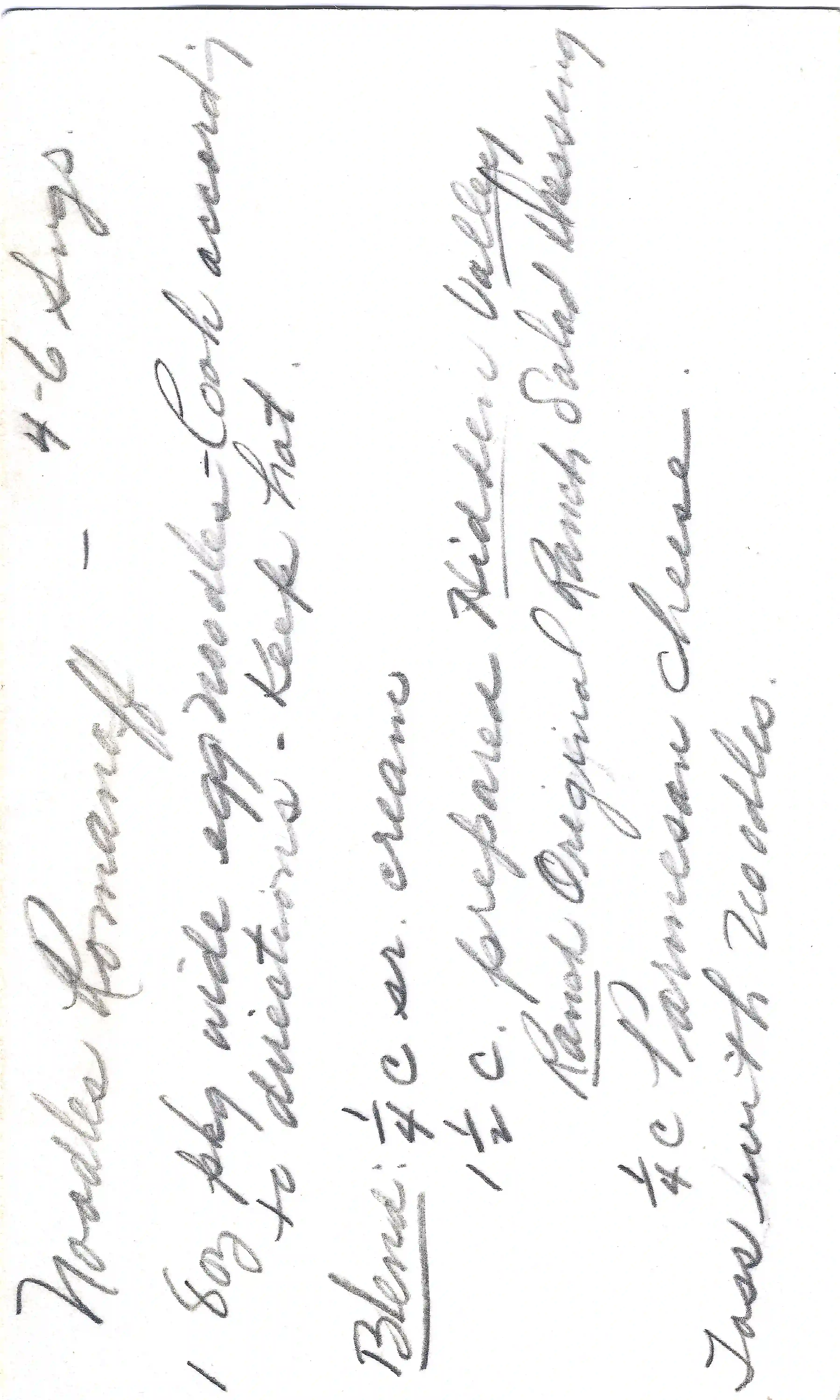 | 1 (8 oz) pkg | Wide Egg Noodles |