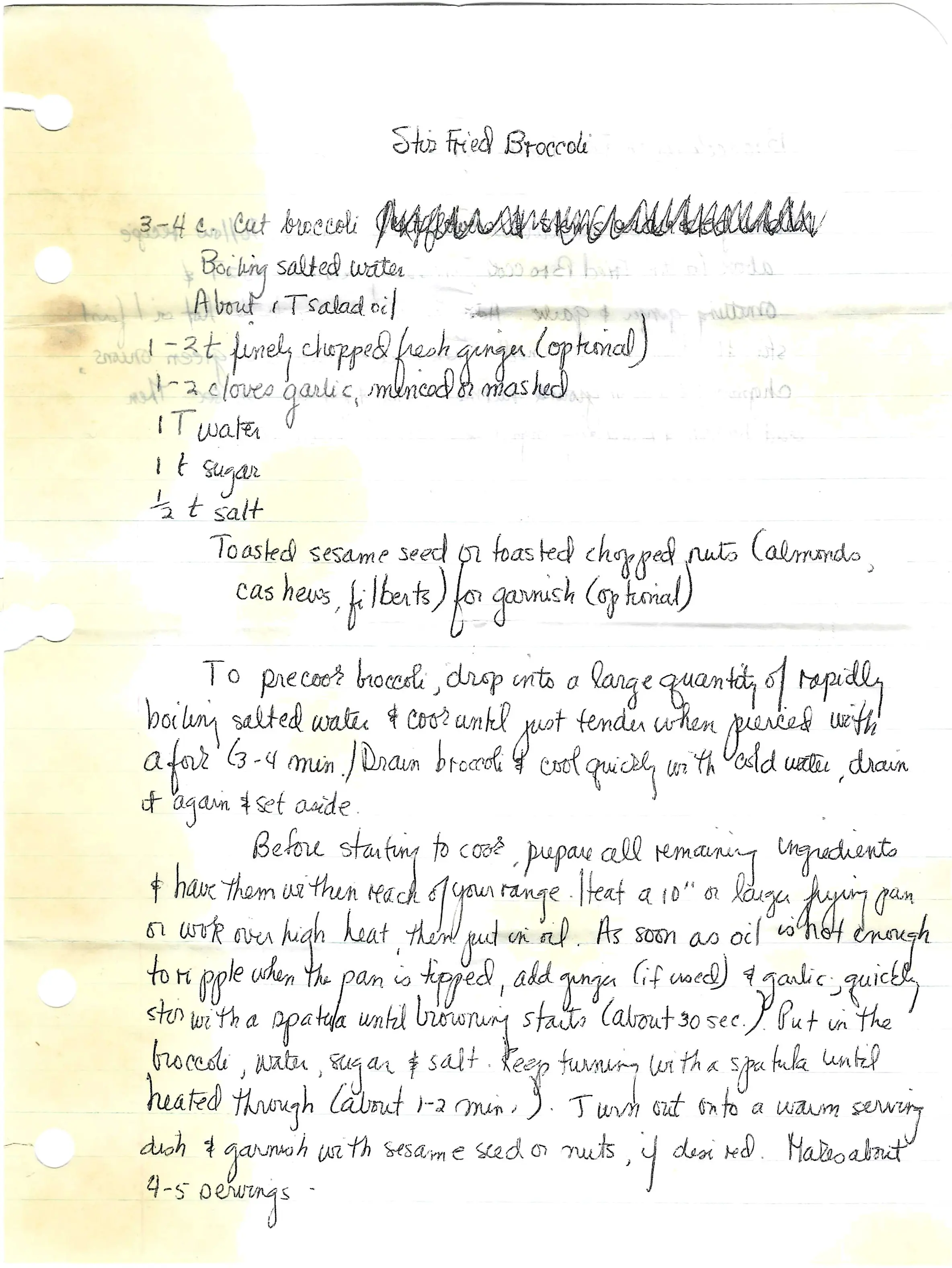 | 3-4 Cups | Cut Broccoli (florets and tender stems) |