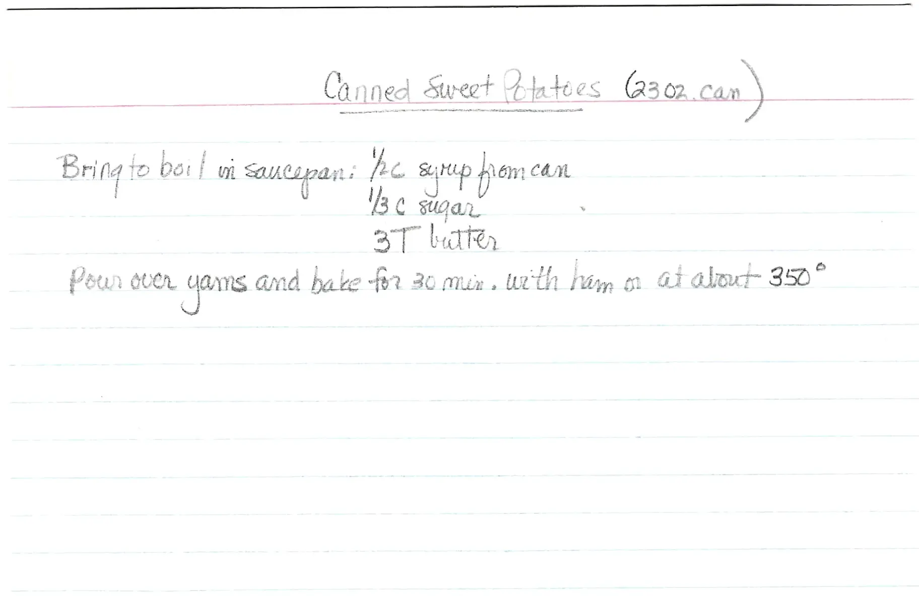 - Pour over yams and bake for 30 min. with ham or at about 350°.
