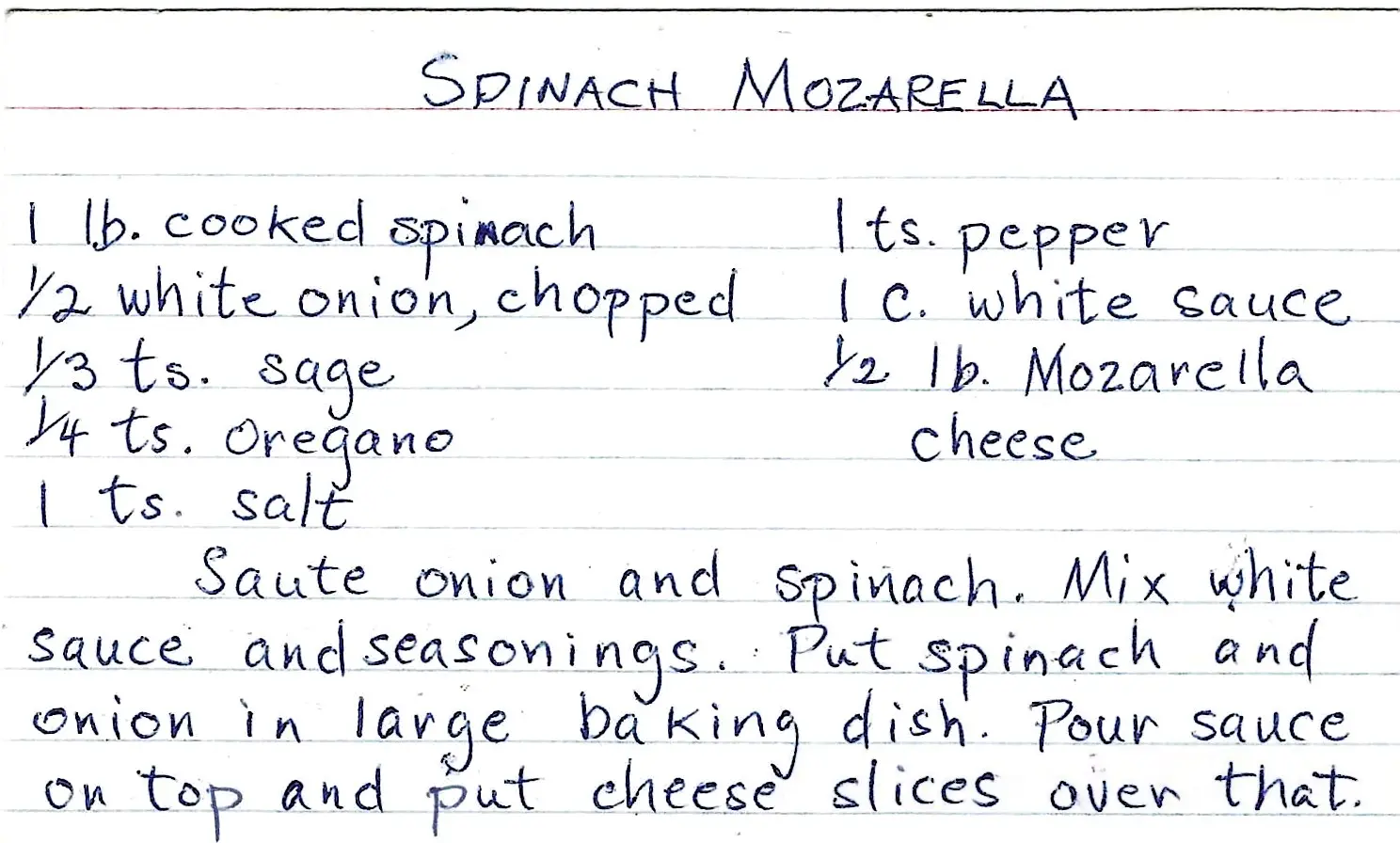 - Put Spinach and Onion in a large baking dish.