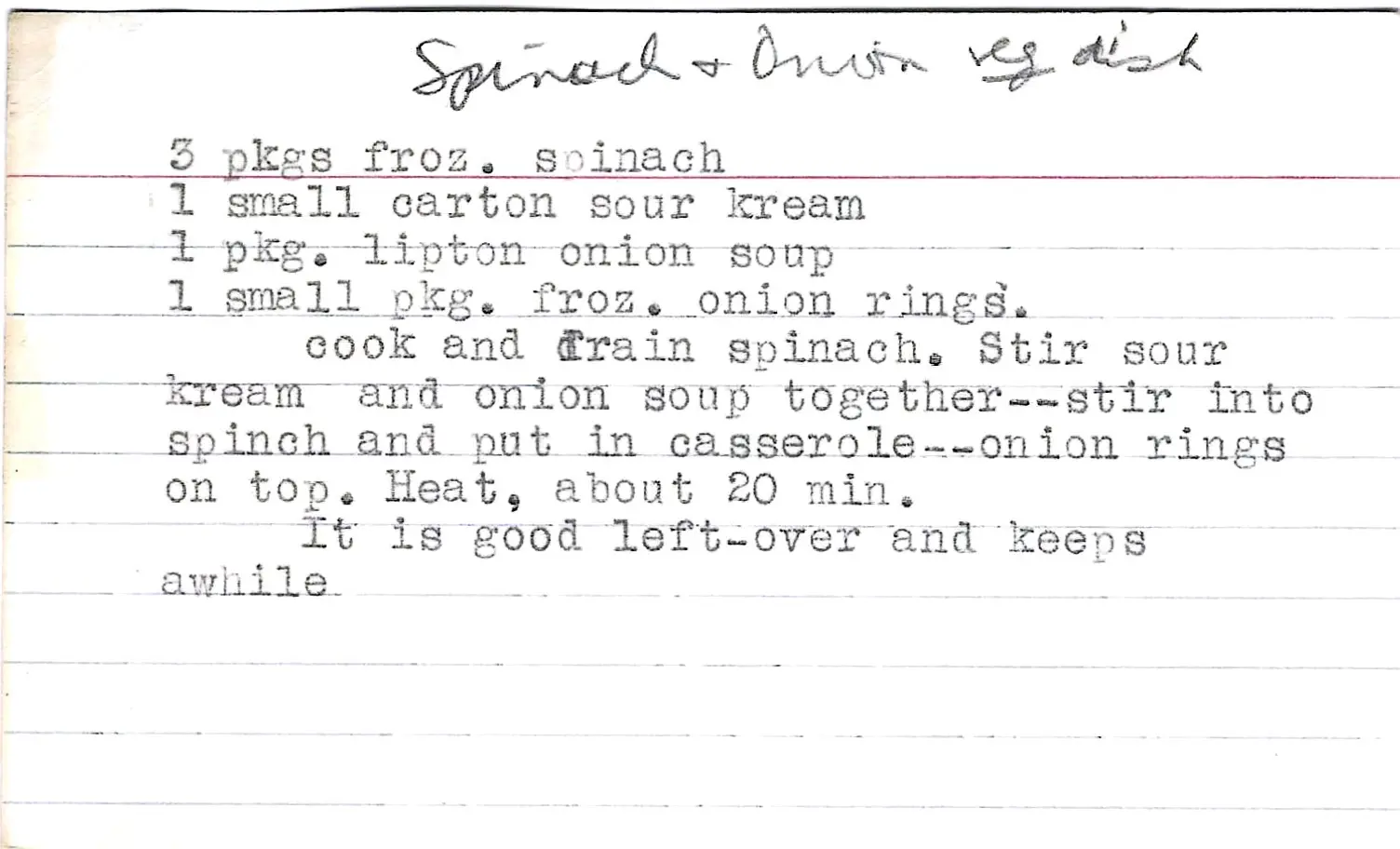 - Heat for about 20 minutes (presumably in a preheated oven, e.g., 350°F, though temperature is not specified on the card).