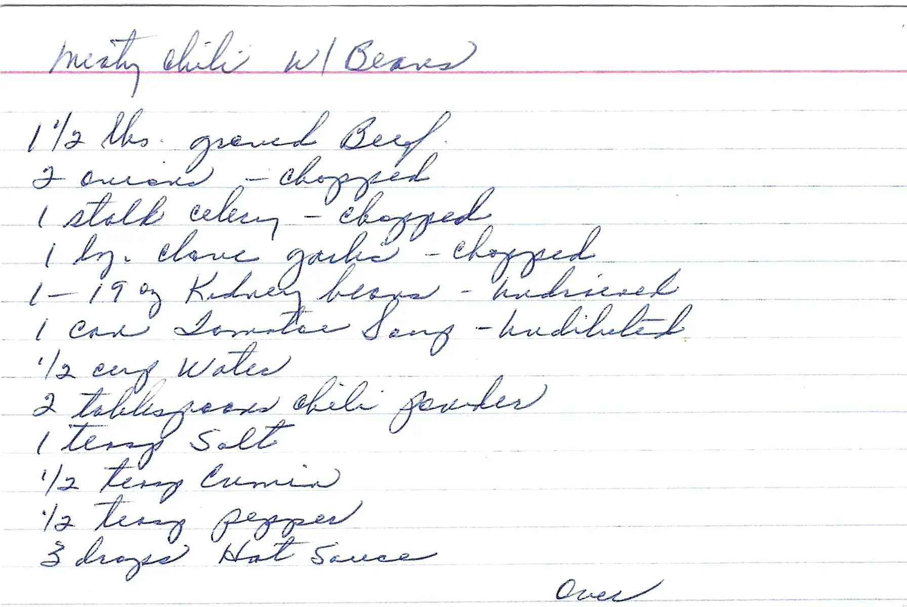 | 1 (19 ounce) can | Kidney Beans, undrained |