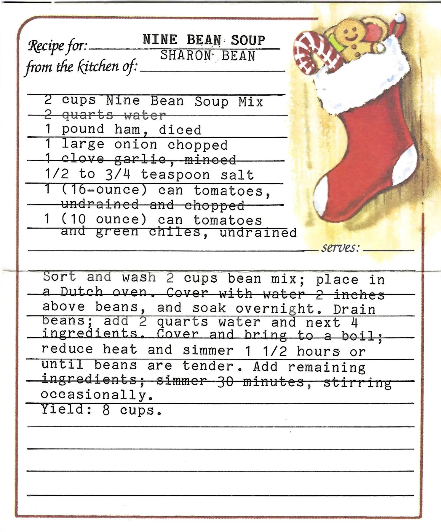 - Return the beans to the Dutch oven and add 2 quarts of water, the diced ham, chopped onion, minced garlic, and salt.